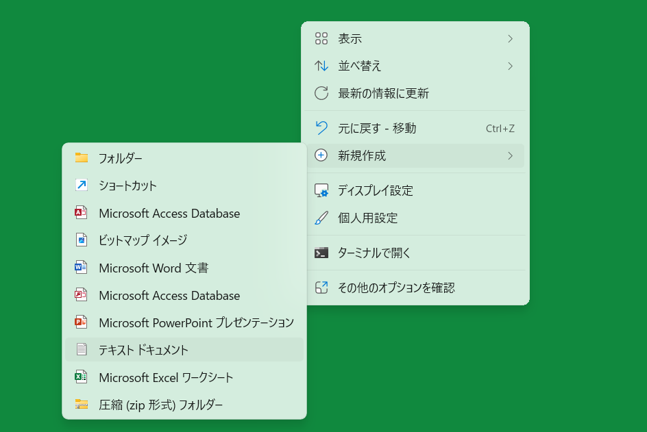 1. パソコン画面を右クリックしテキストデータを作成