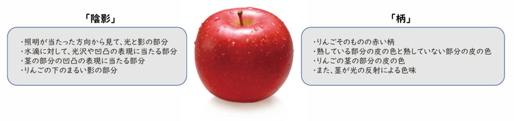 色の3属性を意識して、「陰影」なのか「柄」なのかをしっかり使い分ける。