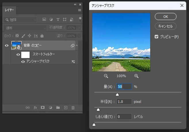 ※アンシャープマスクは画像のレイヤーそのものに適用。