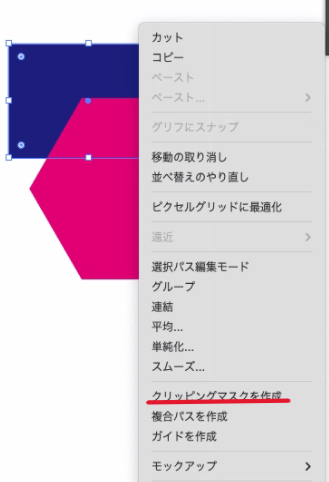 パスで作成した型抜きしたいオブジェクトを右クリックし「ベクトルマスクを作成」を選択する。