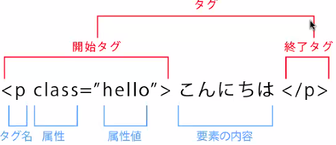 <p class=”hello”>こんにちは</p>