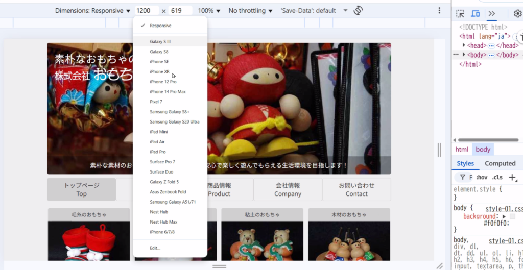 Dimensions Responsive ▼を押す